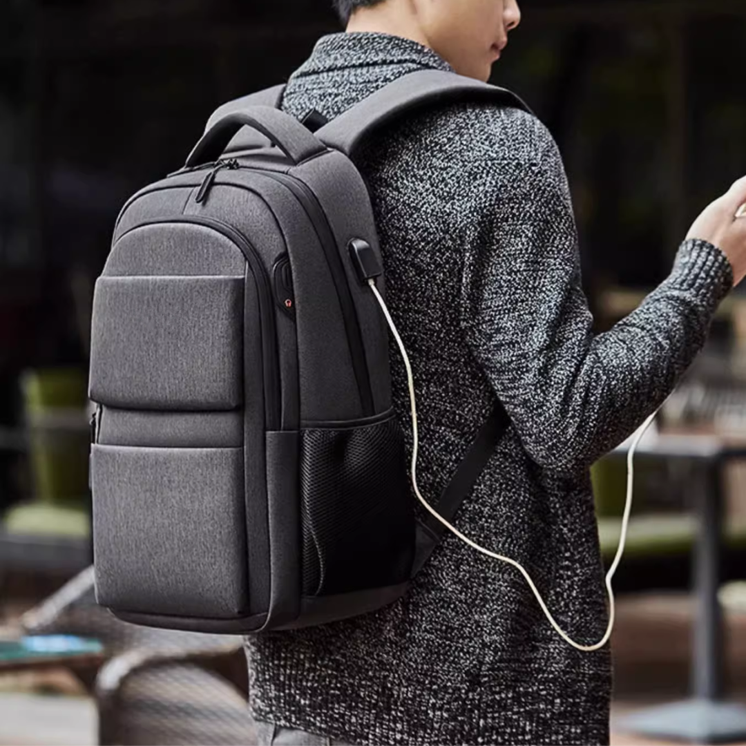 mengdiproducts-Backpack with USB charging port-Dark Grey