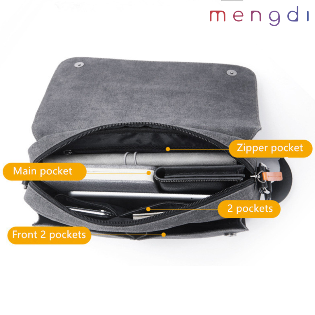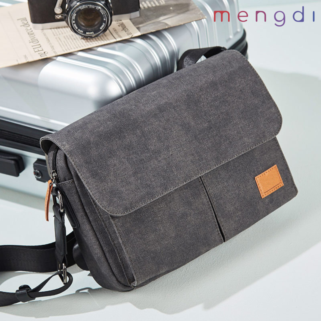 Material: Water-resistant Washed Canvas with PU Leather Decoration. The messenger sling bag is made of a very durable canvas material on the outside and a softer, more luxurious material inside the main compartment.