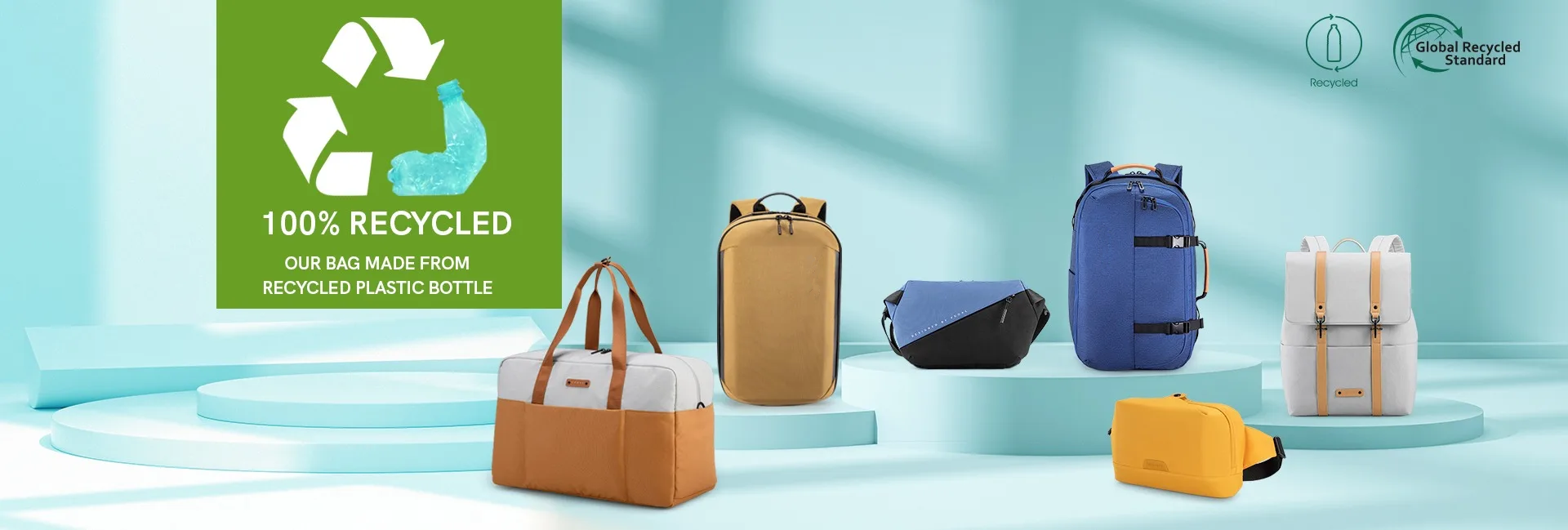 When we select materials, we give priority to durability. We will only use recyclable fabrics if the conditions are met. The use of environmentally friendly materials is a product strategy we adhere to. The current technology only has fabrics, linings, and PU made of 100% recycled. Zippers, etc. have not yet been fully recyclable, but we use hardware accessories that are more environmentally friendly.