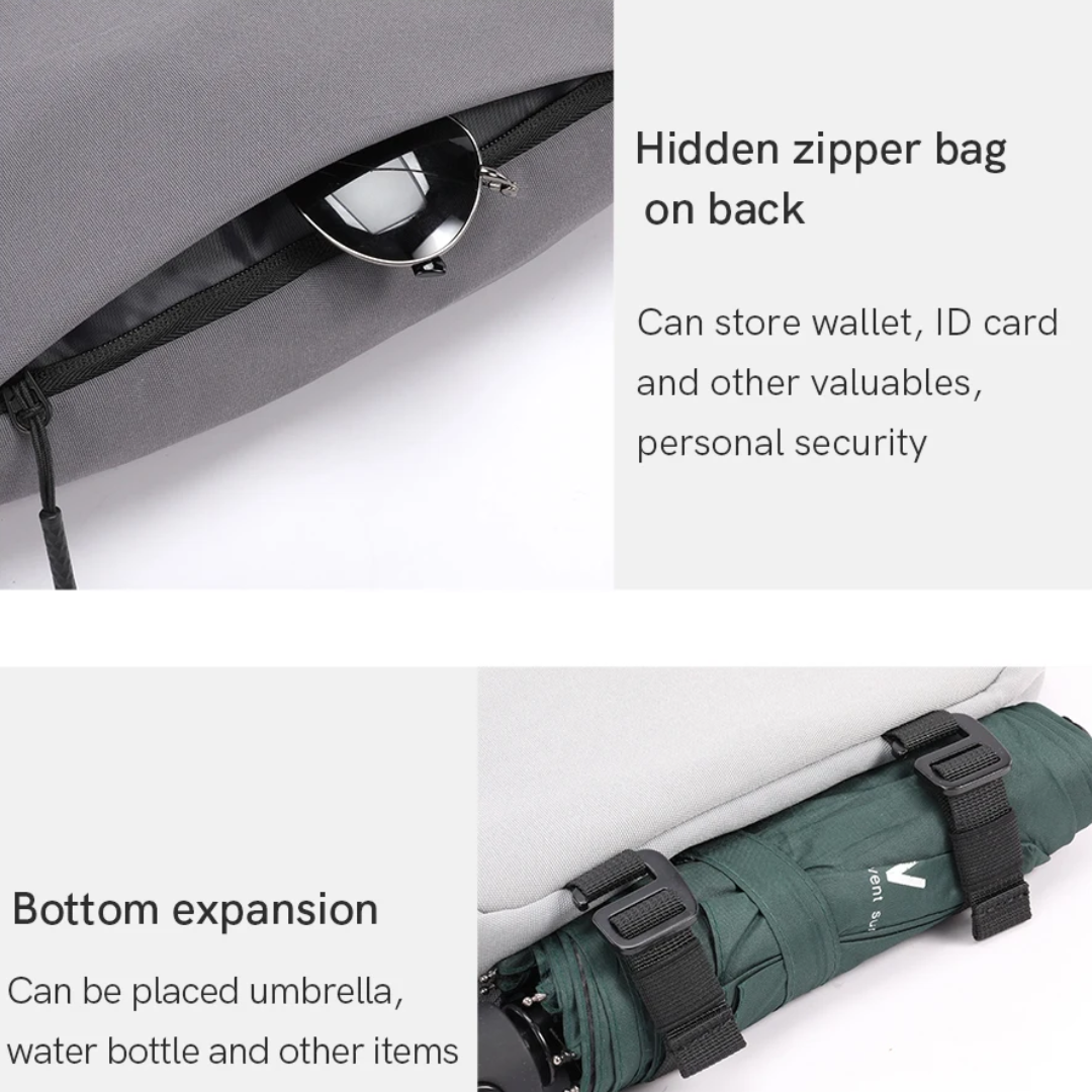 Multiple pockets including a front zipper pocket, main zipper pocket with insert pocket, and concealed back zipper pocket for easy access to your essentials.