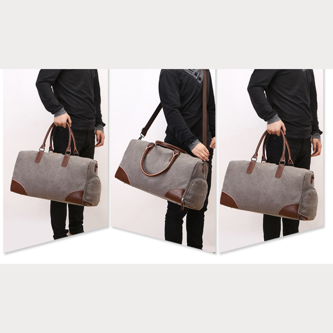 This weekend bag is made of top quality PU leather and waterproof durable canvas.
