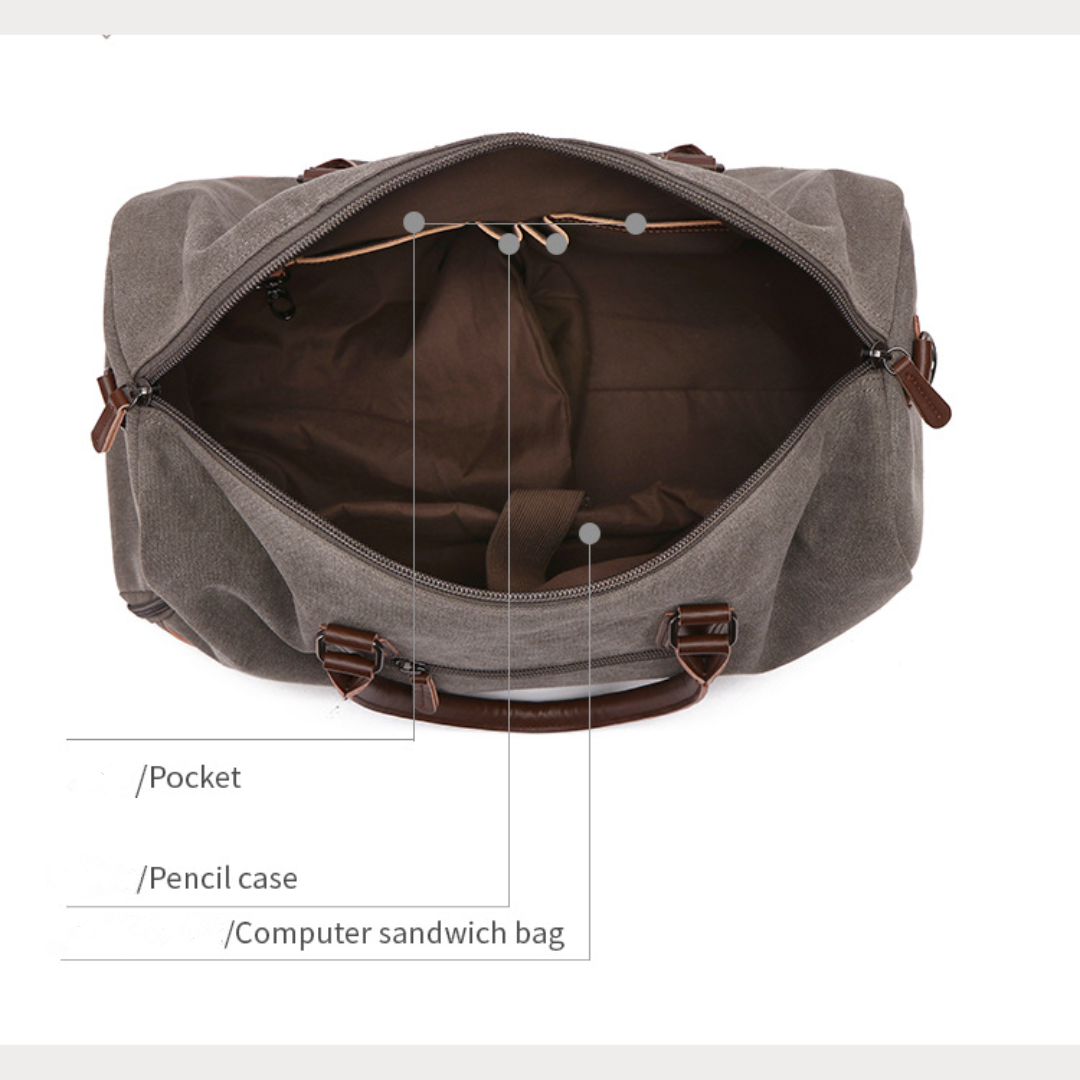 The large main compartment and various inner pockets is perfect for clothes and traveling necessities.suitable for 3-4 days weekender or business trip, can be used as a carry-on flight bag.