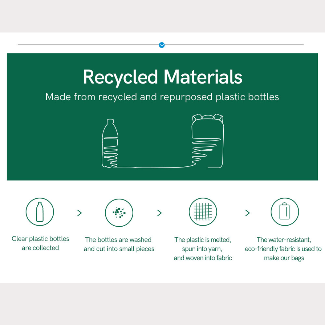 Water-resistant woven fabric, made from recycled Poly. Hidden front zipper pocket for quick access smalls.
