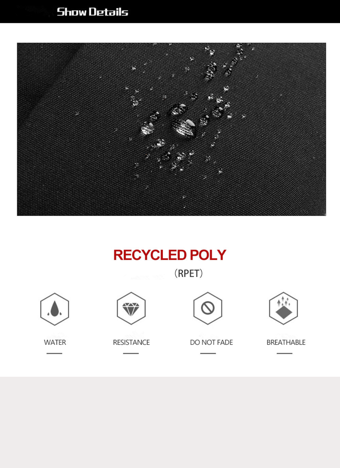Water repellent fabric: Made of water-repellent and wear-resistant polyester fiber fabric.