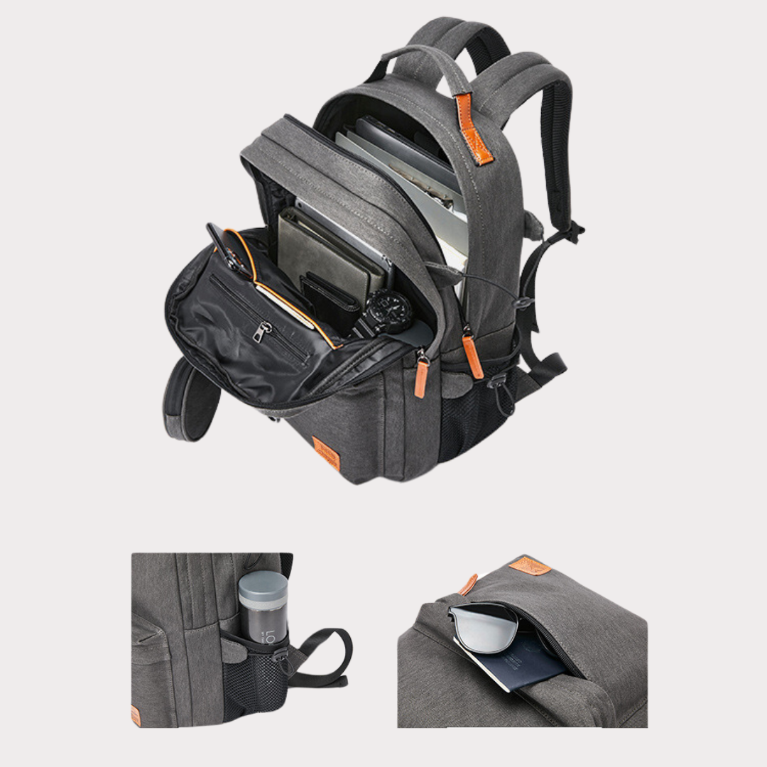 This notebook backpack owns specialized pockets and double-layer lining, which provides double protection for your computer, and tablet during your busy day, daily commute, or adventure travels.