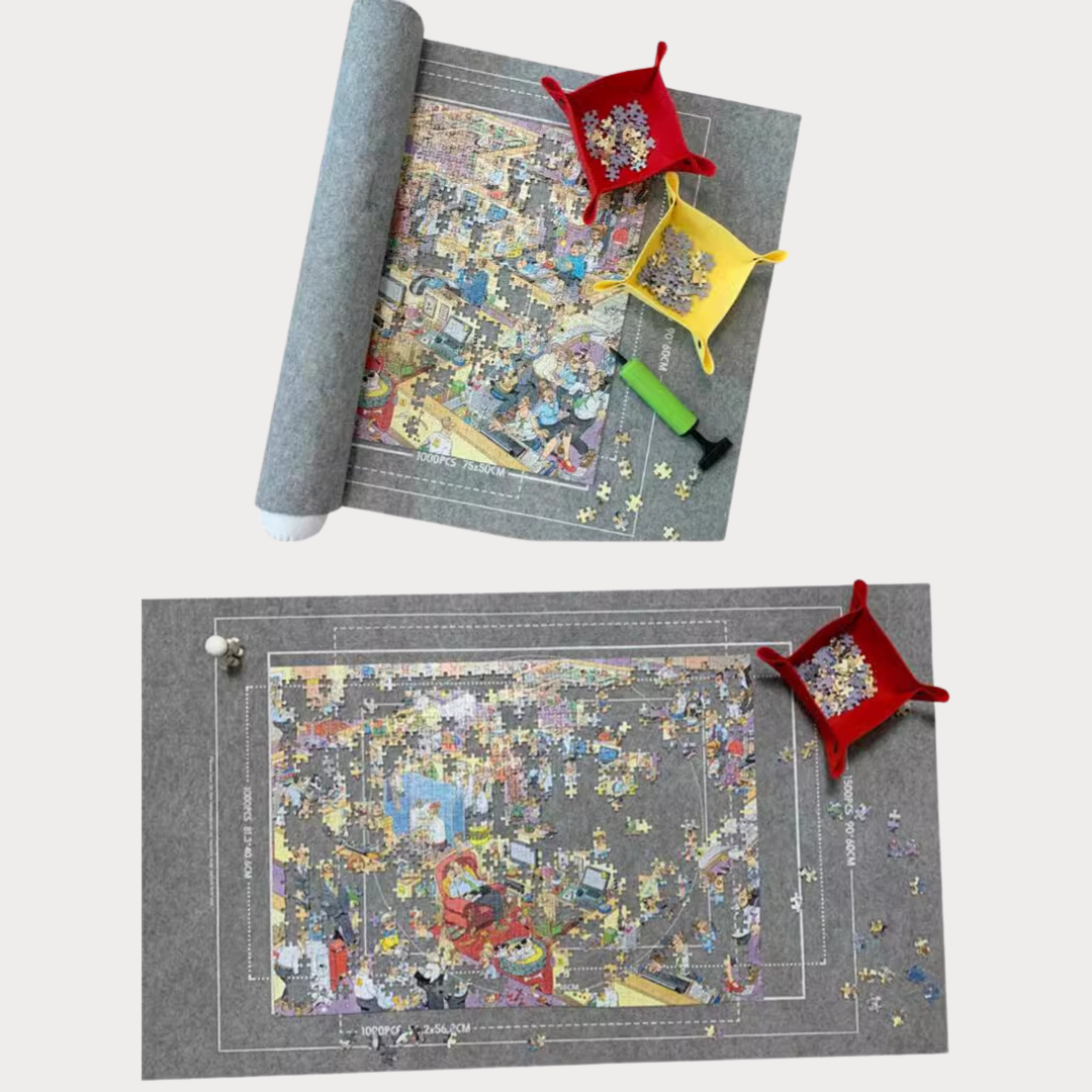 • Store large jigsaw puzzles up to 1,500 pieces. The no slip felt mat