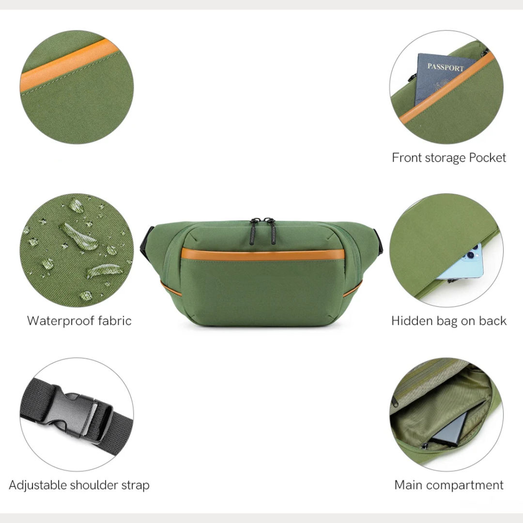 Easy-access pockets with a main compartment and side pocket having storage capacity for phone and other small items.