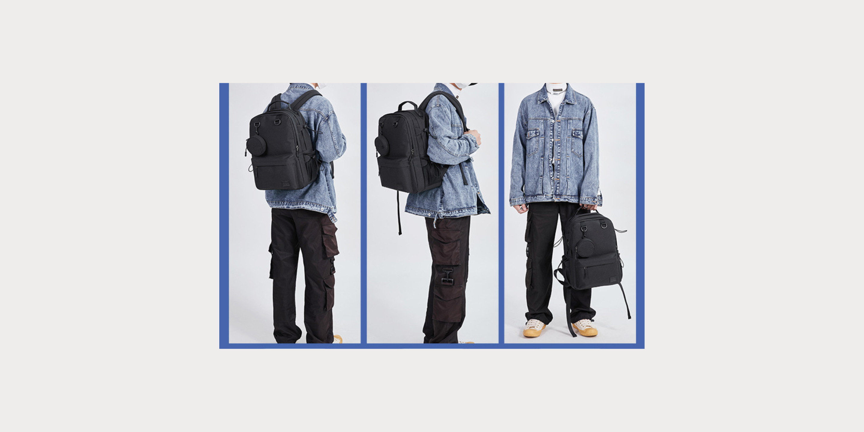 The two side pockets of the large bookpack can put in the bottle and umbrella.