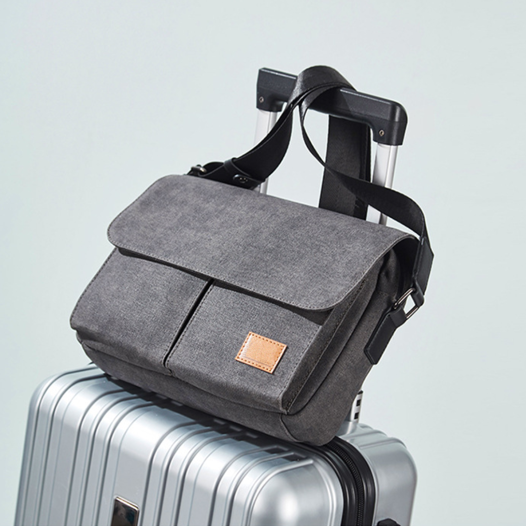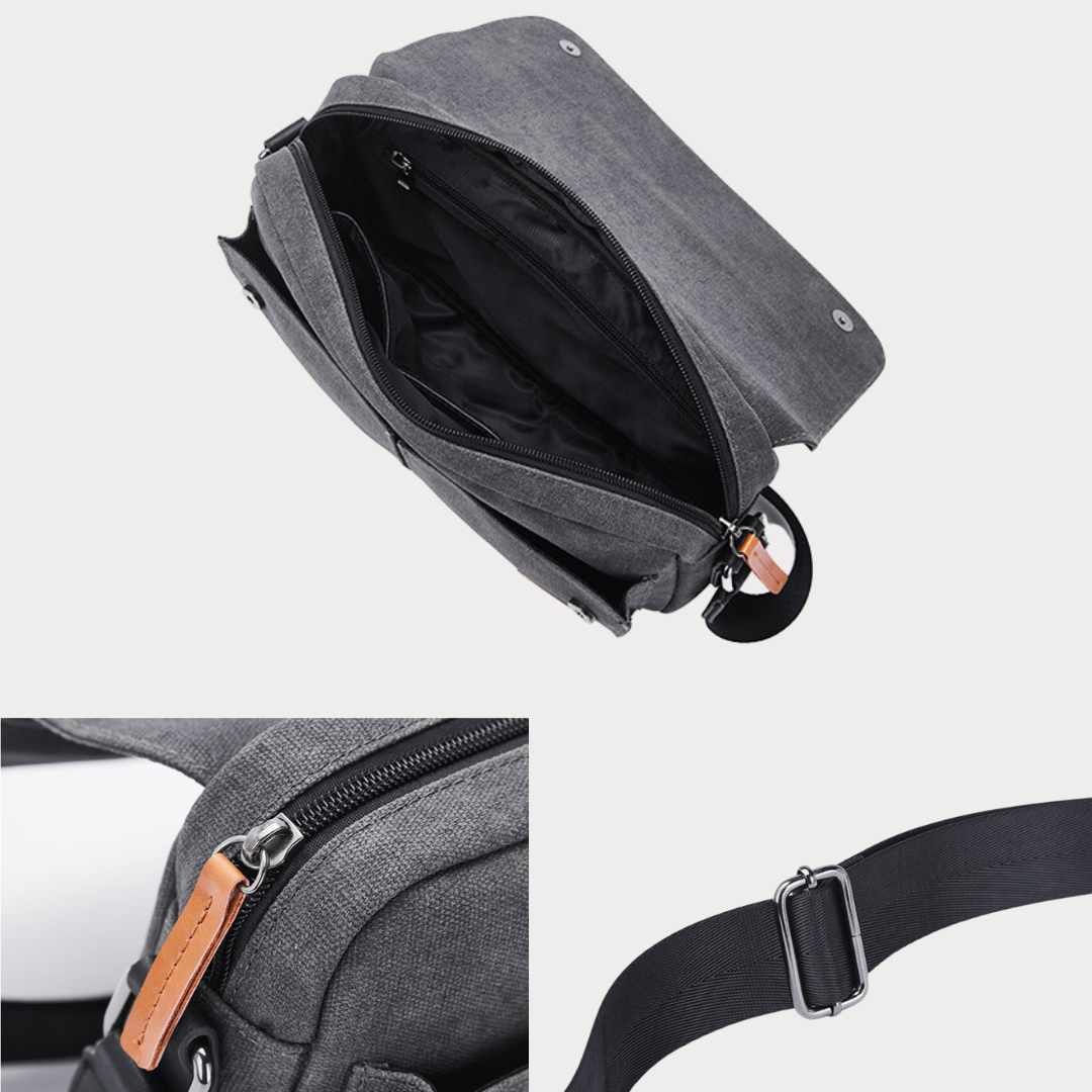 Vintage and multifunctional canvas sling bag with lots of pockets.