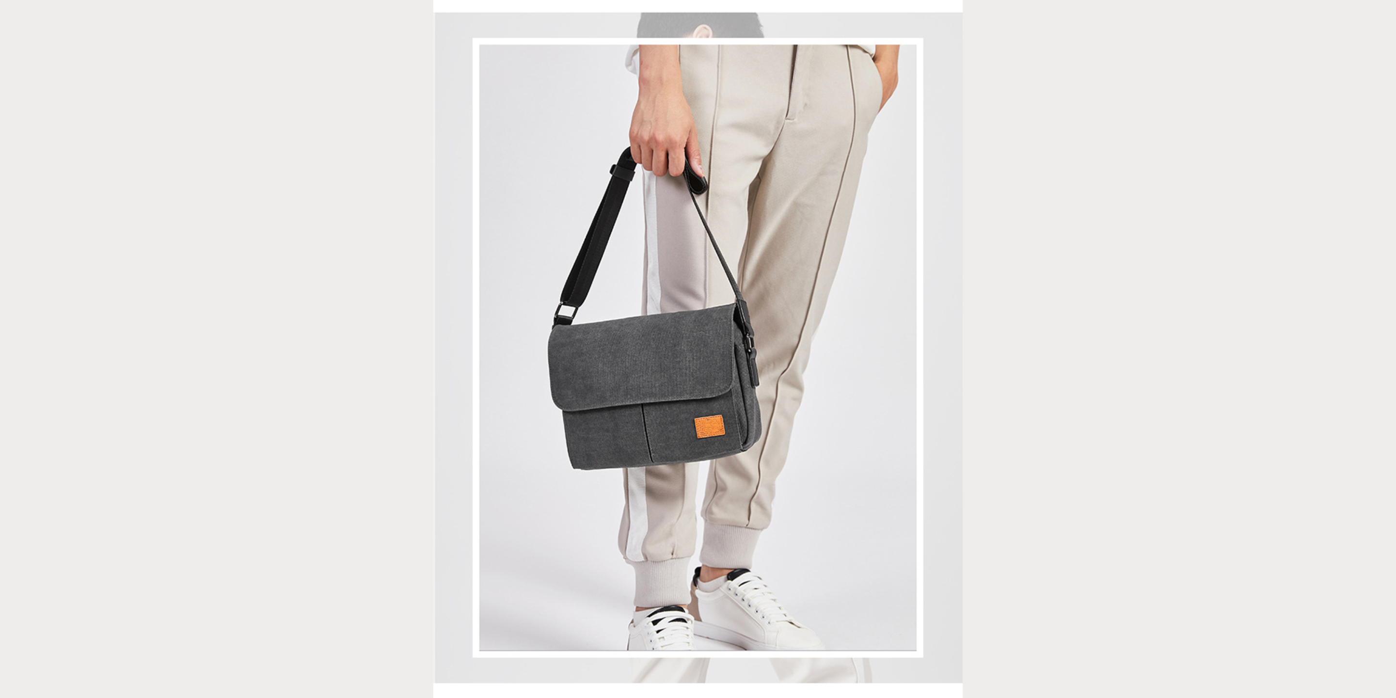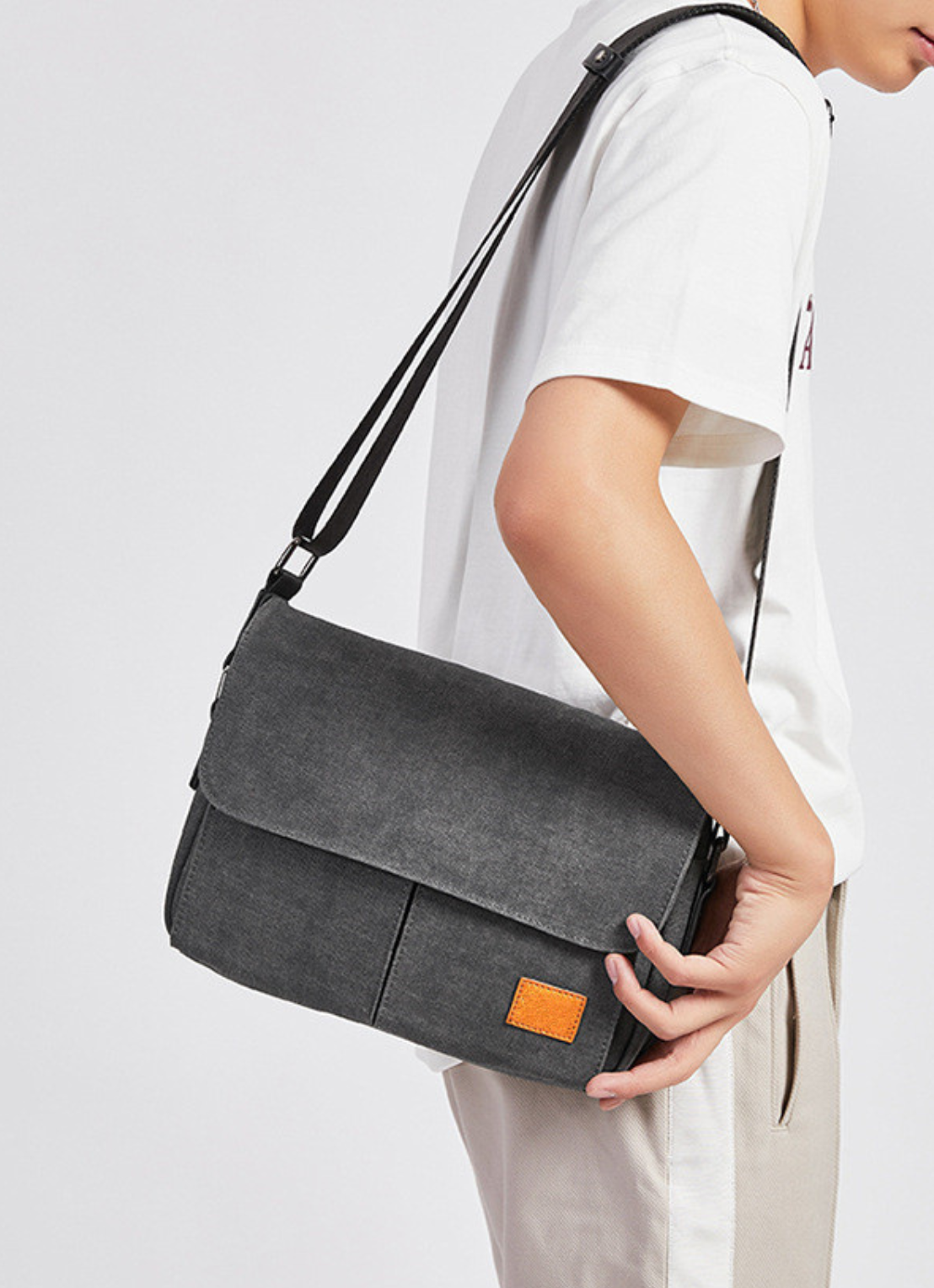 Material: Water-resistant Washed Canvas with PU Leather Decoration. The messenger sling bag is made of a very durable canvas material on the outside and a softer, more luxurious material inside the main compartment.