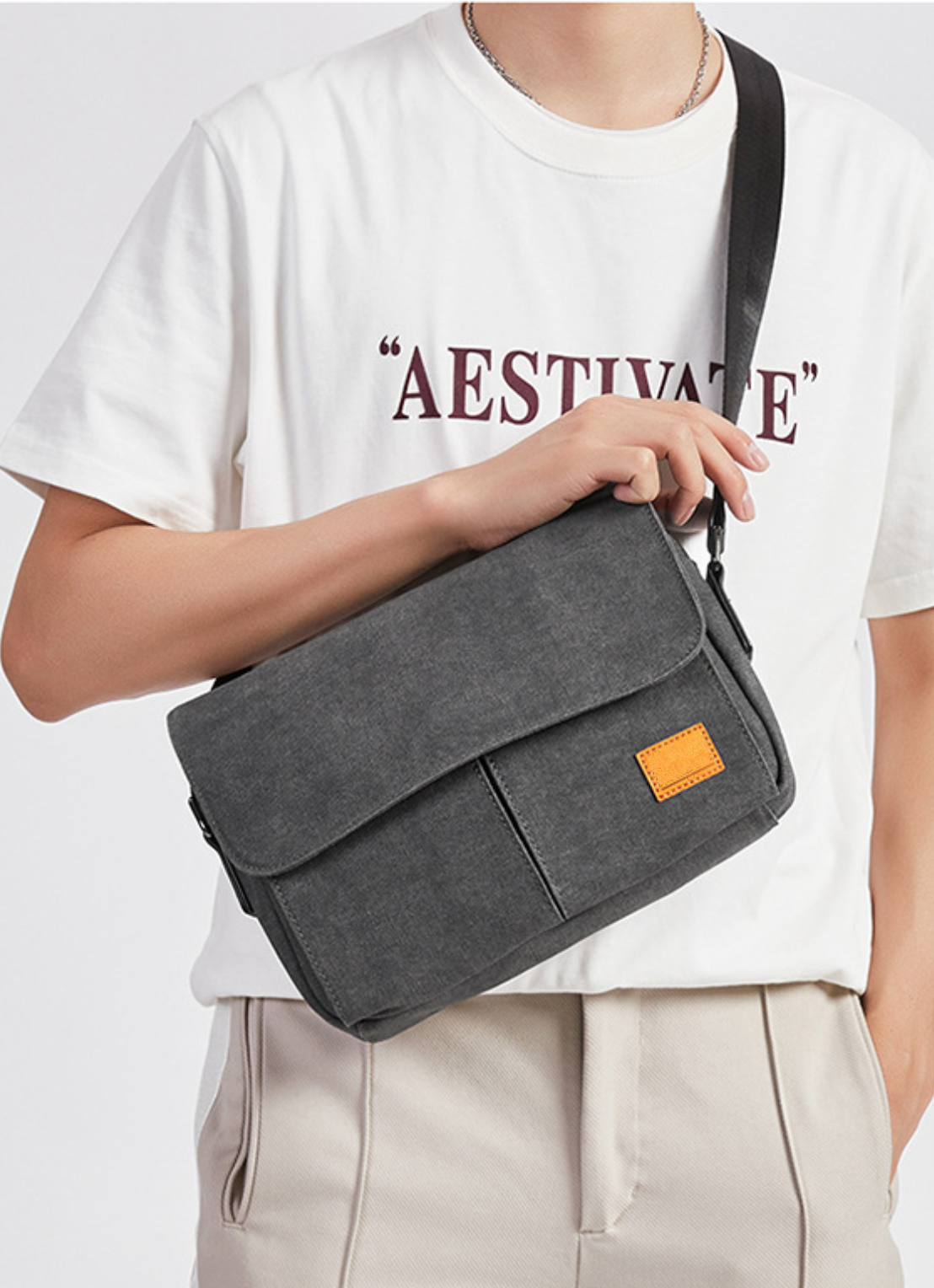 mengdiproducts-Canvas Sling Bag-Grey