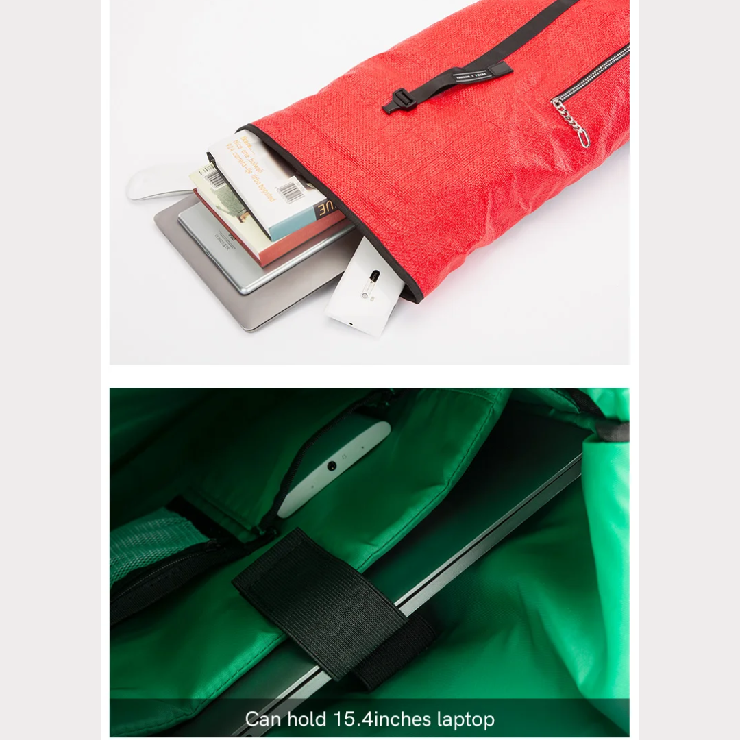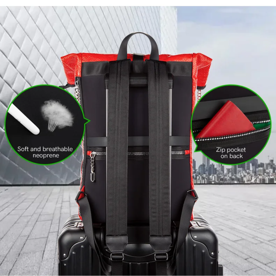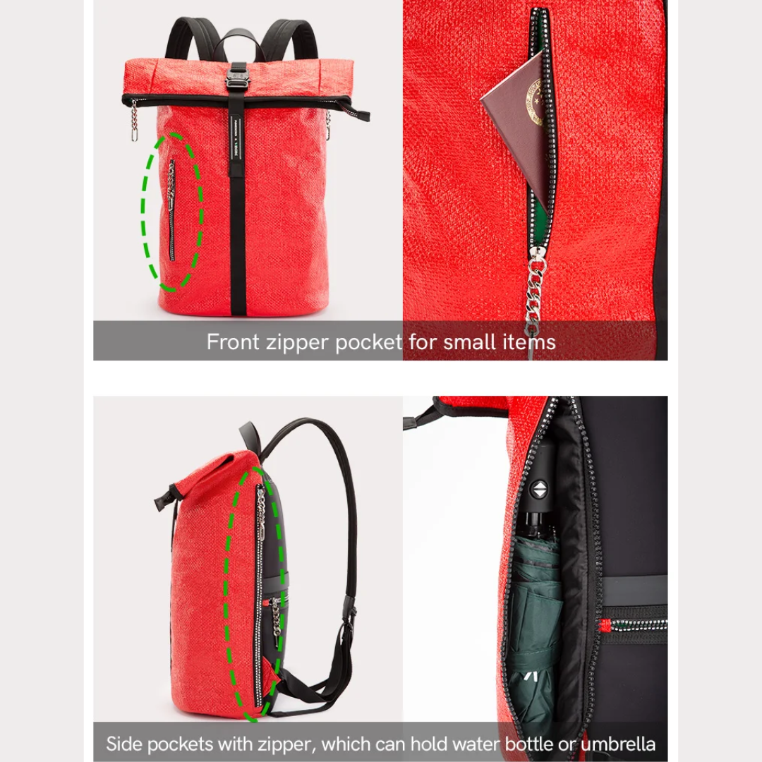 The main compartment has a large opening design, with the computer layer, sundries bag inside, and umbrella/water bottle pocket outside, and quick access pocket in the front. Free your shoulders and travel easily.