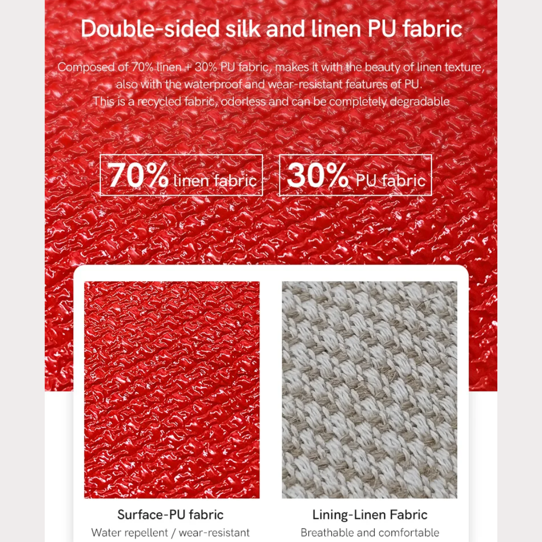 Composed of 70% linen+30% PU fabric, make it with beauty of linen texture.This is recycled fabric, odorless and can be completely degradable.