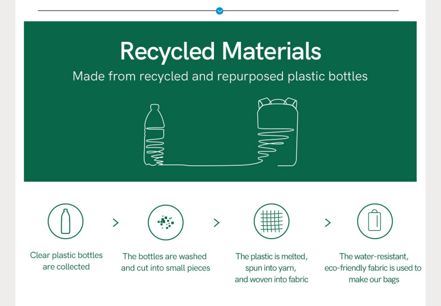 Made from recycled and repurposed plastic bottles. Minimalist look with a smooth, minimal panel design.
